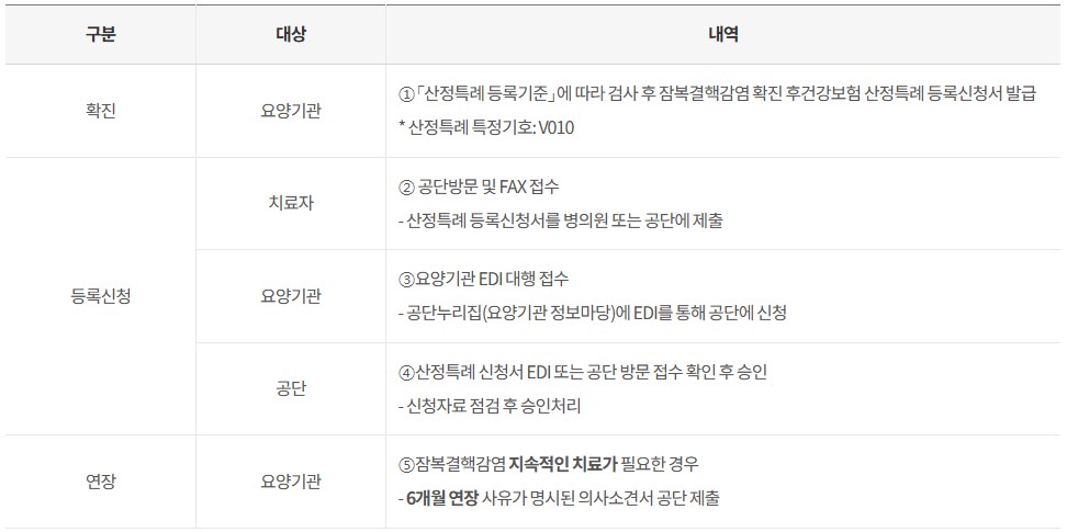 잠복결핵감염 치료비 지원(산정특례) 안내